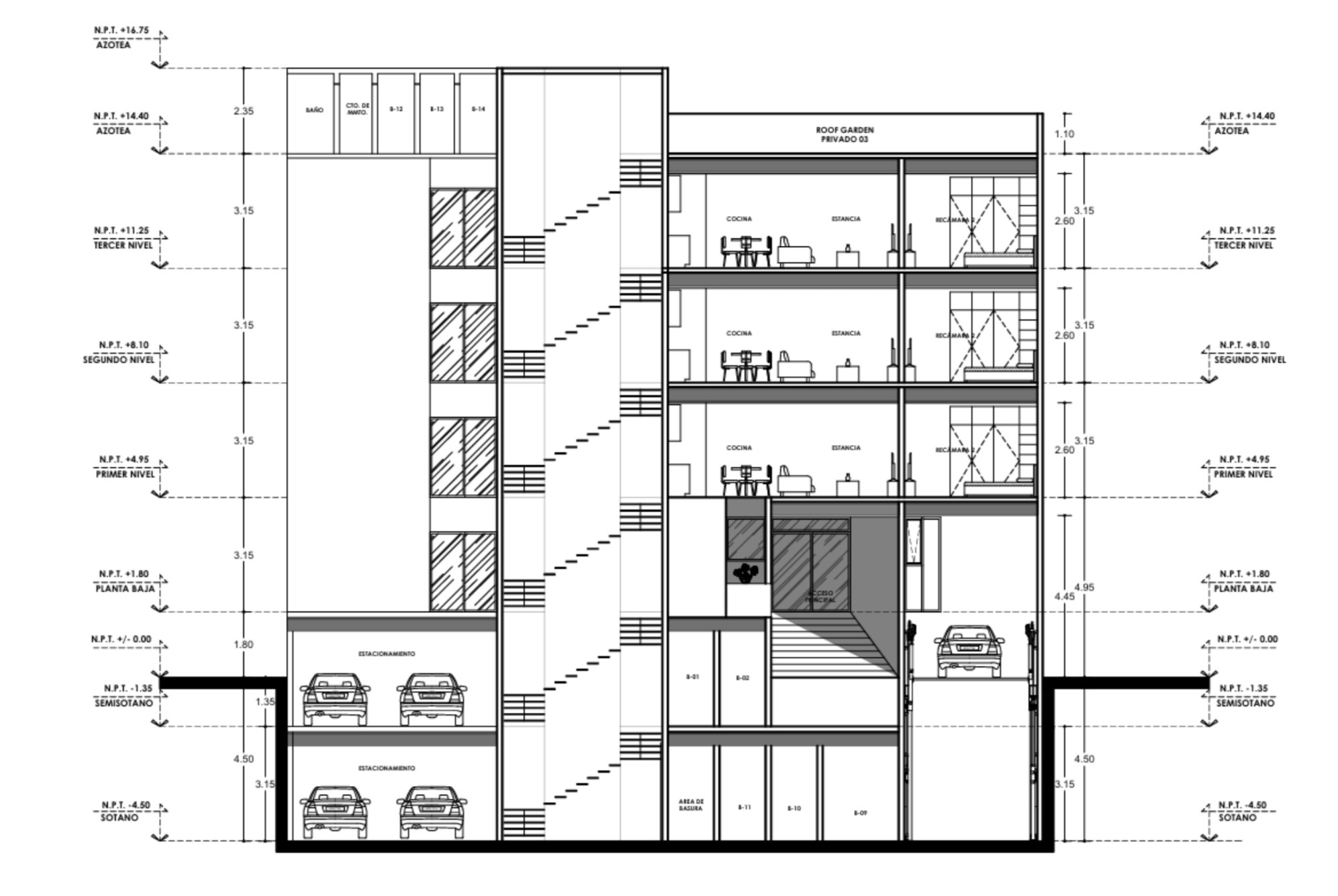 Conformado por únicamente 11 departamentos, este proyecto ofrece un entorno privado y de baja densidad, ideal para quienes buscan tranquilidad sin sacrificar conectividad ni servicios. Su distribución contempla 4 niveles habitacionales, con 2 a 3 unidades por nivel, así como 2 niveles de estacionamiento (sótano y semisótano), optimizando comodidad y accesibilidad.