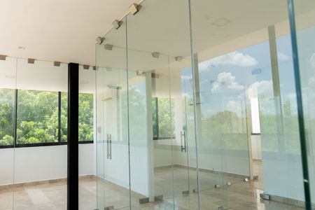 -Baño completo con cancelería de vidrio templado y acabados contemporáneos.
