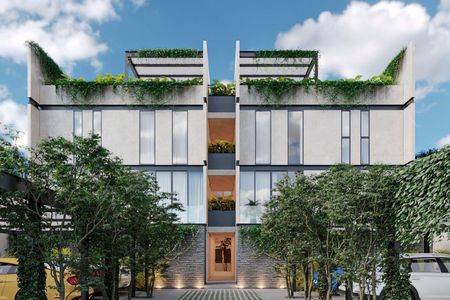 Terraza con alberca y área de bar, Baños para áreas comunes, Rooftop con área grill y terraza para eventos, Elevador, Shut para basura, Estacionamiento techado